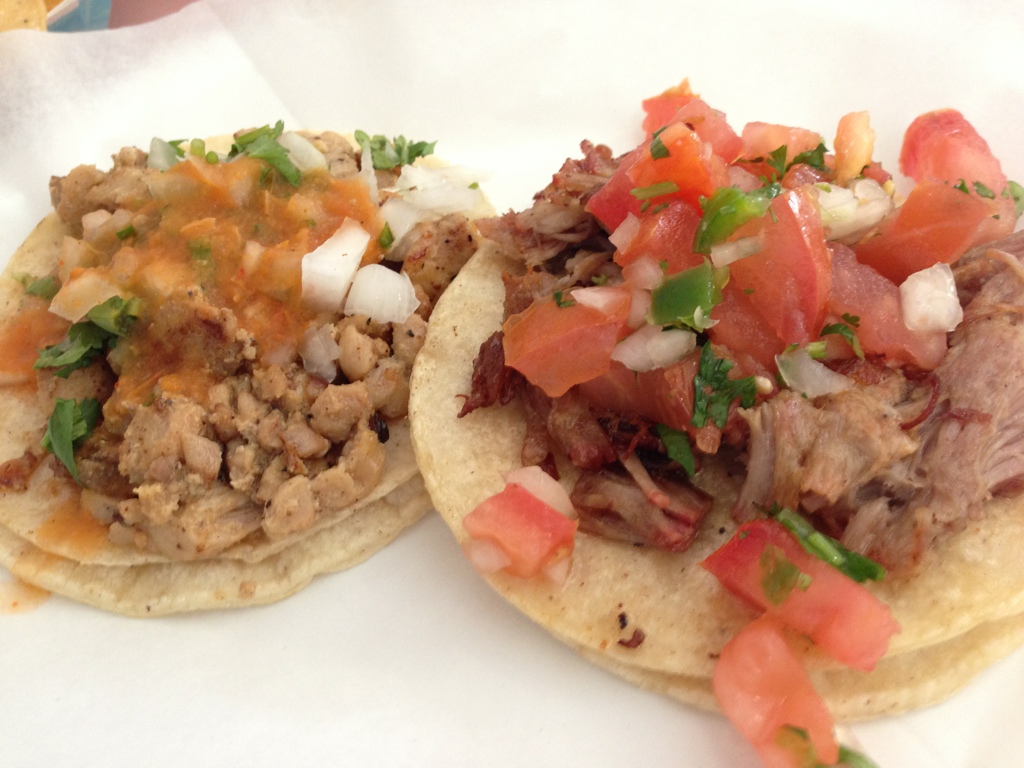 Carnitas y pollo tacos